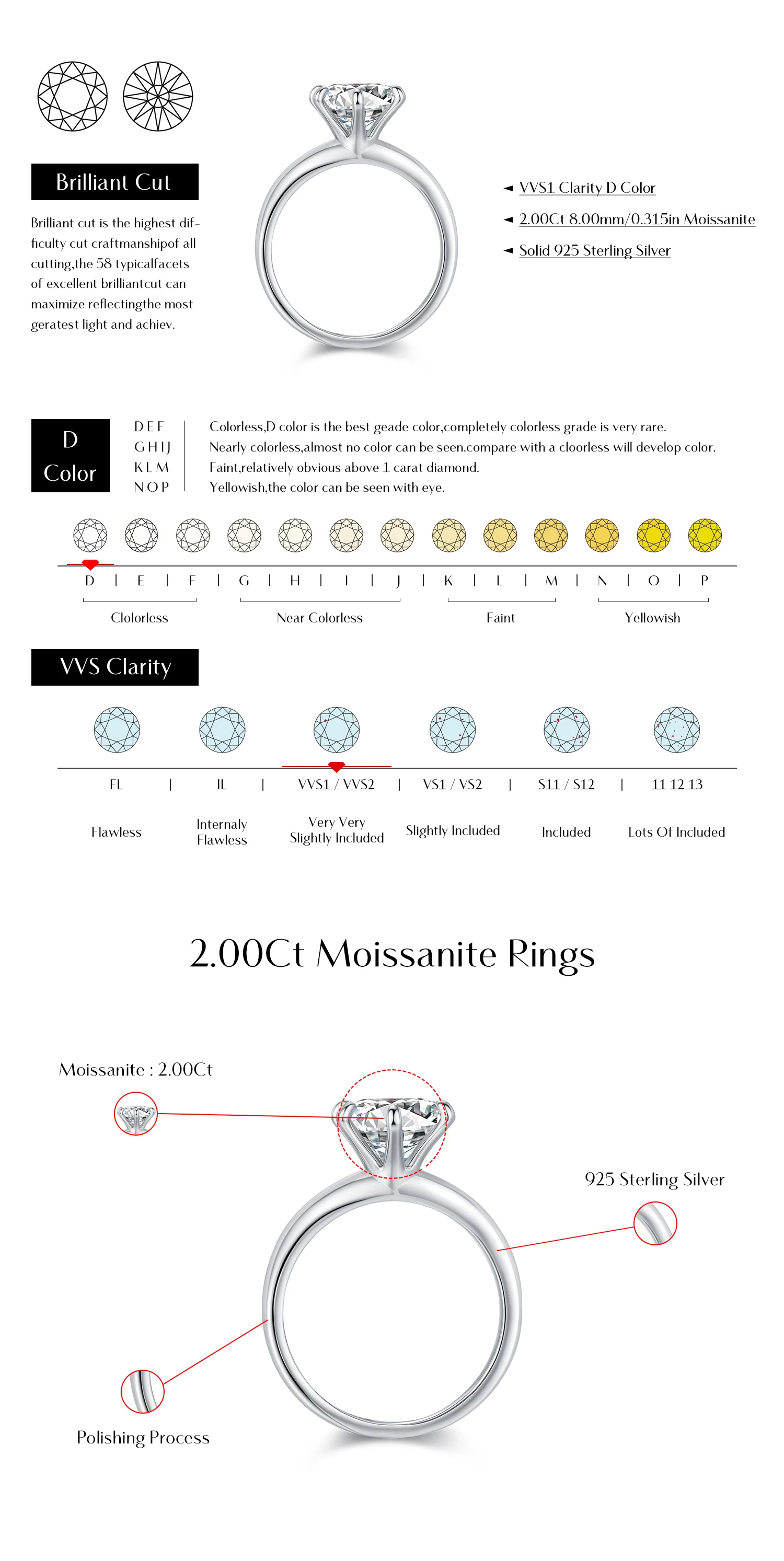 Ring Main Stone Weight/Pieces:Moissanite Diamond 2.00 Carat x 1