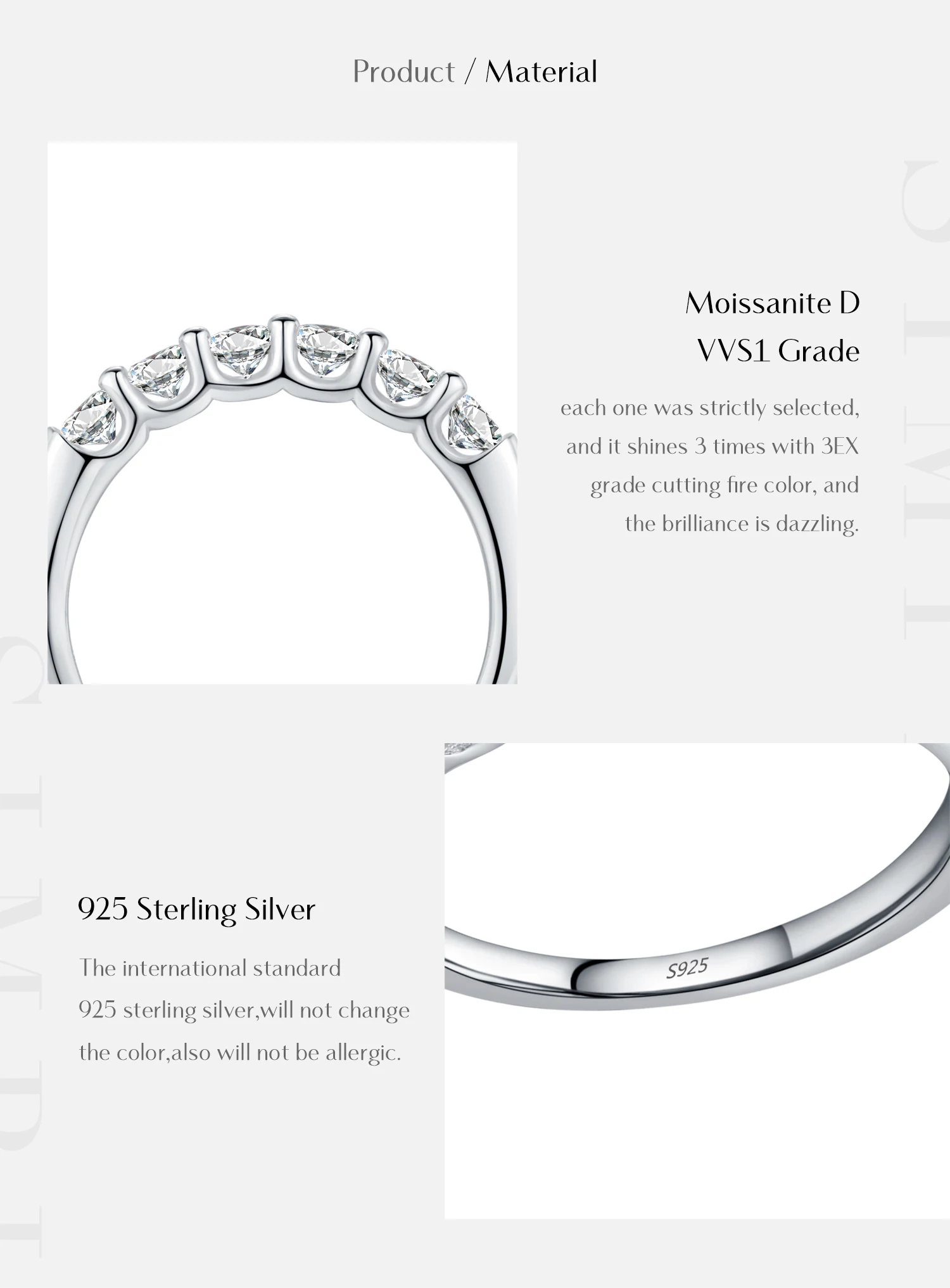 Ring Main Stone Weight/Pieces:Moissanite Diamond 0.10 Carat x 6